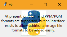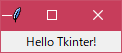 Tk(Tkinter)の最も簡単なウィジェットの1つ、では、ラベルを使ってチュートリアルを開始します。 Label は、Tkinter ウィジェットクラスで、テ>キストやイメージを表示するために使用されます。 ラベルは、ユーザーが表示するだけでは、対話しないウィジェットです。 "Hello World" の例で始まらないプログラミング言語への本や紹介はほとんどありません。 我々は、伝統を引き継ぐが、出力を "Hello World" ではなく、"Hello Tkinter" にわずかに変更します。 import tkinter as tk # if you are still working under a Python 2 version, # comment out the previous line and uncomment the following line # import Tkinter as tk root = tk.Tk() w = tk.Label(root, text="Hello Tkinter!") w.pack() root.mainloop() |