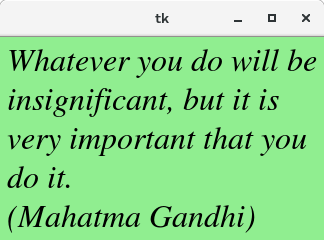 Tkinter変数をメッセージに関連付けます。通常はStringVarです。 変数が変更されると、メッセージ・テキストが更新されます。