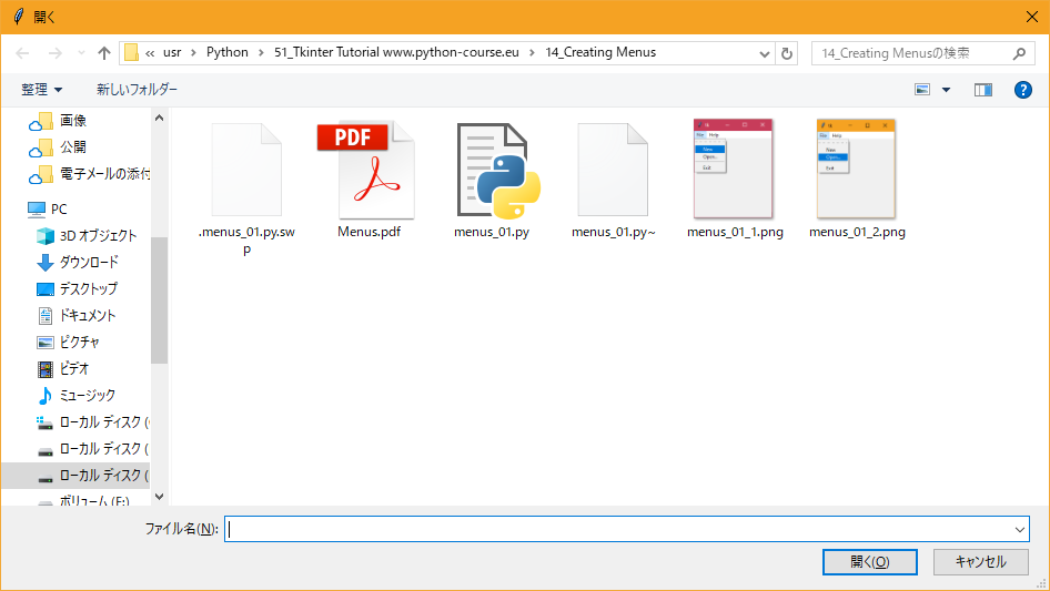 次の Python スクリプトは、メニュー付きの簡単なアプリケーションウィンドウを作成します。