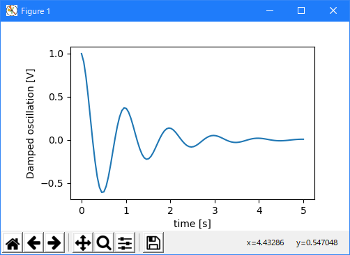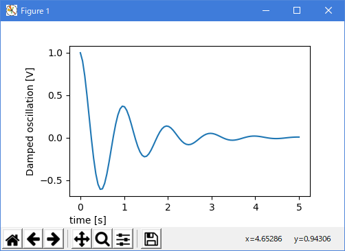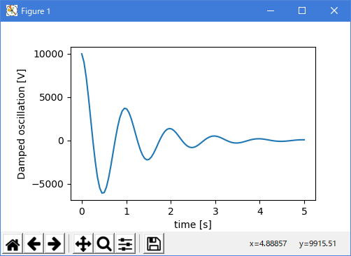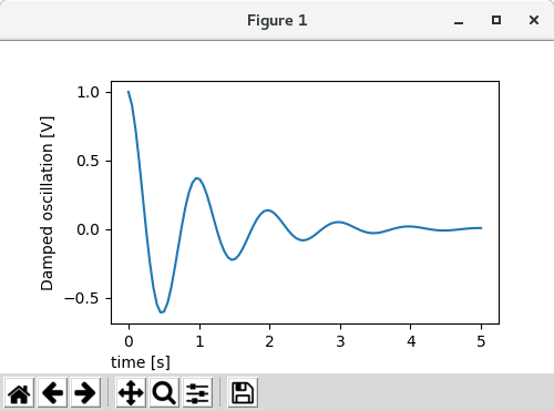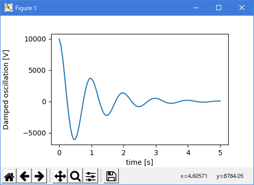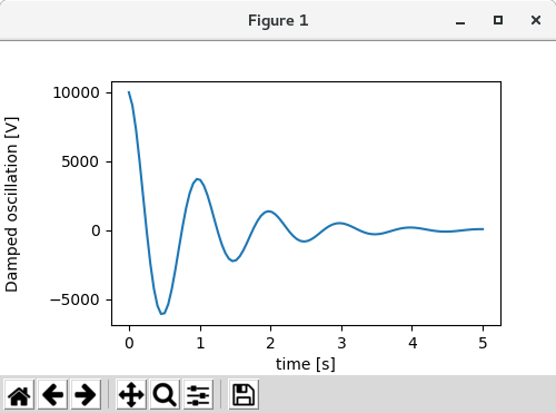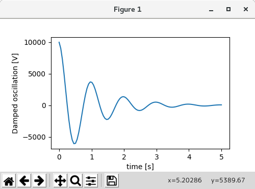 ax.set_ylabel('Damped oscillation [V]', labelpad=18)