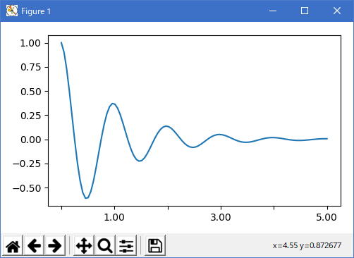 y1 = np.cos(2 * np.pi * x1) * np.exp(-x1)