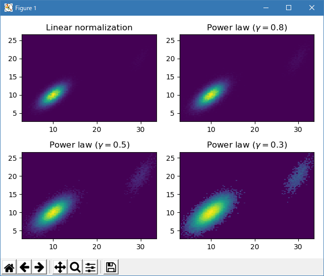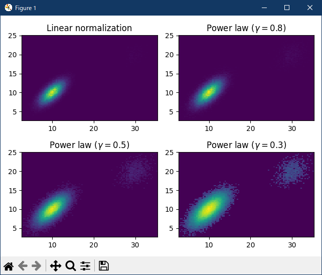 Python 3.11.6 (matplotlib 3.7.1) 及び Python 3.12.0 (matplotlib 3.8.1) で、見直し中、新しいサンプル(power-norm-p) を見つけ、下記のコードで、正常に実行できました。