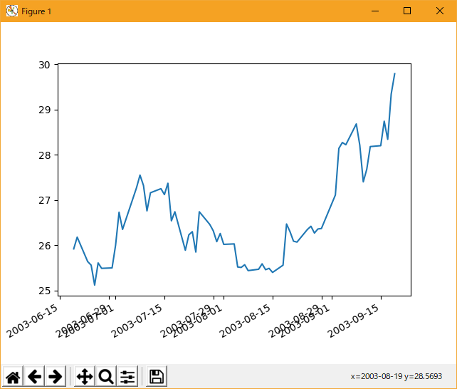 ![]() Python 3.11.2 見直しました。上記のコードでは、下記のエラーが発生します。 loading C:\Users\_____\AppData\Local\Programs\Python\Python311\Lib\site-packages\matplotlib\mpl-data\sample_data\msft.csv Traceback (most recent call last): File "_:\loadrec.py", line 8, in <module> a = mlab.csv2rec(datafile) ^^^^^^^^^^^^ AttributeError: module 'matplotlib.mlab' has no attribute 'csv2rec' matplotlib 内部のエラーのようです。matplotlib の改修(先祖帰りバグの改修)を待つしかない。 Python 3.11.6 (matplotlib 3.7.1) では、下記のようなエラーがあり、実行できない。 loading C:\Users\_____\AppData\Local\Programs\Python\Python311\Lib \site-packages\matplotlib\mpl-data\sample_data\msft.csv Traceback (most recent call last): File "M:\______\loadrec.py", line 8, inPython 3.12.0 (matplotlib 3.7.1) では、下記のようなエラーがあり、実行できない。 loading C:\Program Files\Python312\Lib\site-packages\matplotlib\mpl-data\sample_data\msft.csv Traceback (most recent call last): File "E:\______\loadrec.py", line 8, inPython 3.11.6 (matplotlib 3.7.1) 及び Python 3.12.0 (matplotlib 3.8.1) で、見直し中、新しいサンプルが見つからないので、自力で改修しました。 msft.csv から date と close を抜き出し、datetime 配列 と float 配列 に変換するコードを作成しました。 今後、csv ファイル読取関数にまとめたい。