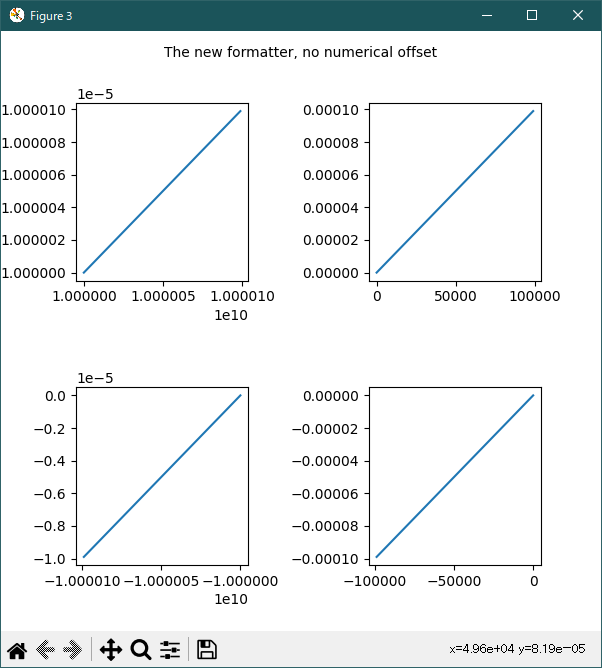 fig.text(0.5, 0.975, 'The new formatter, no numerical offset',