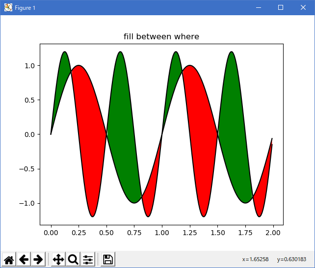 ax.fill_between(x, y1, y2, where=y2<=y1, facecolor='red')