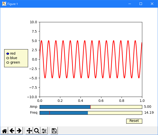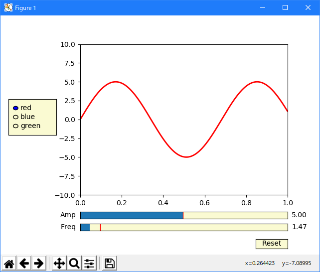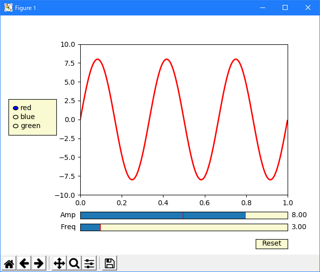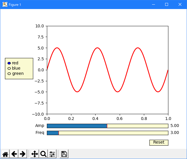 radio = RadioButtons(rax, ('red', 'blue', 'green'), active=0)